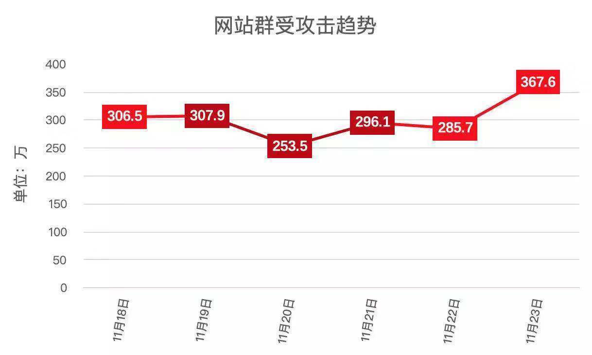 本届联合国世界地理信息大会的网络攻击趋势严峻,从11月18-23日,网络攻击态势一直居高不下,平均保持在300万/天,网络空间的安全保障攻坚战异常艰巨。