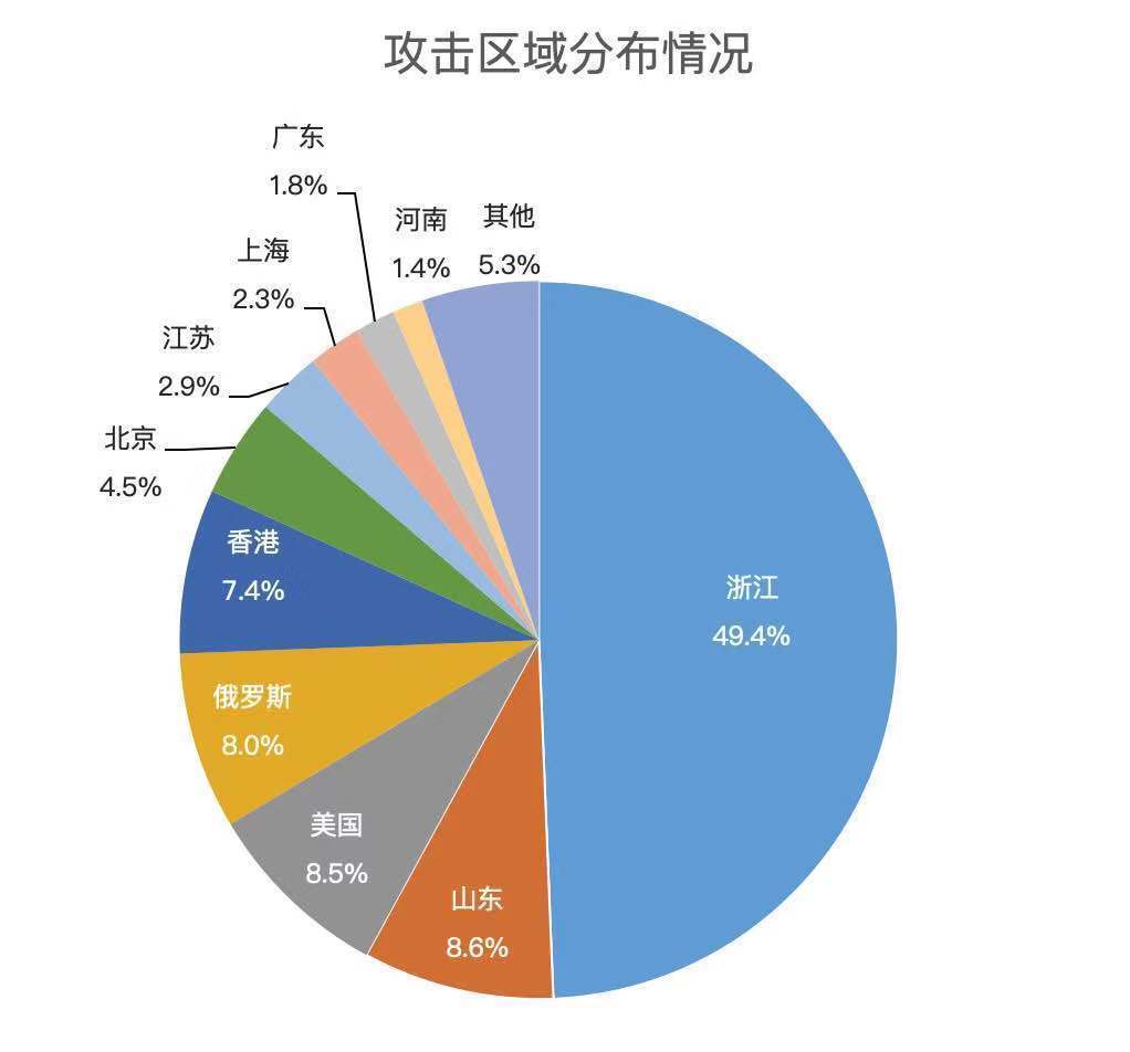 而在世界互联网大会举办期间,网络攻击数量大增,攻防对抗激烈,攻击态势整体保持在170万次左右。大会闭幕期间,相比会议期间,网络攻击的数据下降,但总体攻击依旧较高,平均处于65万次/天,依旧高于前期会议筹备阶段的攻击数量。