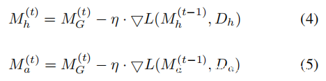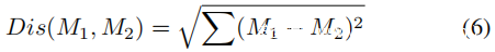 给定两个模型M1和M2,利用欧几里得距离(这是测量高维空间中距离的最常用方法之一)来衡量它们之间的差异(等式6)。