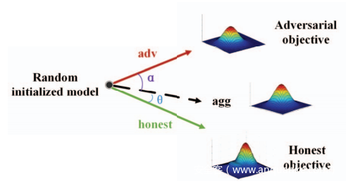 协作学习和联邦学习中的攻击者可能很强大。他们可以推断其他用户训练集的成员资格,但是这种攻击将系统中的攻击者数量限制为1。由于攻击者仅获取全局参数,因此他无法从汇总中识别出特定用户的参数。结果,如果存在多重攻击者,则此攻击将无法成功。 Bhagoji等[1]探讨了由单一的非竞争性恶意代理发起的联邦学习中模型投毒攻击的威胁,其对抗目标是使模型以高置信度对一组选择的输入进行错误分类。