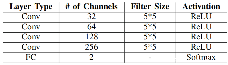 对于以上数据集,实现了一个由十名参与者组成的联邦学习系统。培训数据平均分配给每个参与者。参与者同意相同的模型架构和超参数。选择一个卷积神经网络(CNN)(请参阅下表中的体系结构),它具有四个卷积层和一个完整的连接层,并使用Relu作为前四层的激活函数,并使用Softmax作为输出的激活函数层。将批量大小B设置为十。学习率η以0.098的指数速率从0.08衰减。此外添加了正则化项(λ= 0.01)以防止模型过度拟合。将模型中每个神经元的权重初始化为从正态分布N(0,0.022)采样的随机值,并将偏差初始化为0。