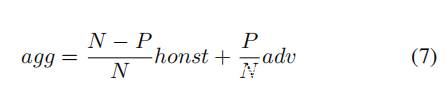 在P(P≤N / 3)攻击者隐藏在N个参与者中的分布式投毒攻击下,可以将S上的全局模型聚合算法重写为等式3: