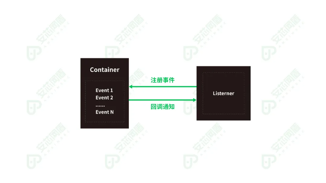 ② spring类Spring类主要有Listener和Controller两种类型。Listener接口由Spring框架定义,应用程序通过实现特定的Listener接口,并将接口注册到Spring框架,当程序关心的事件发生时,Spring框架会通知Listener,回调Listener方法。