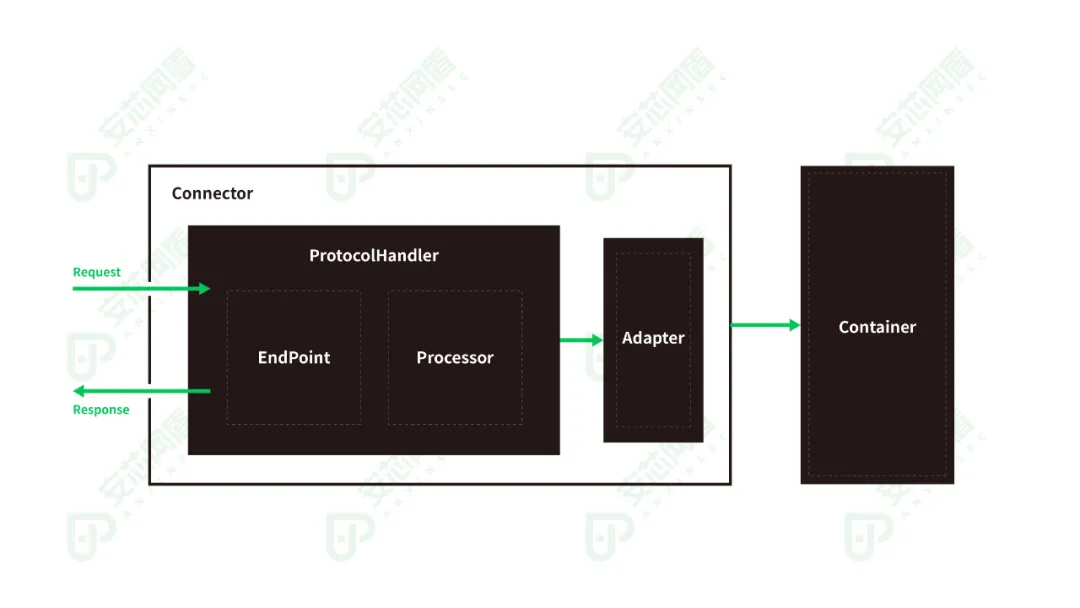 Servlet-api类内存马主要有Servlet和Filter两种类型。Servlet主要用于Tomcat、WebLogic等Java应用服务器。攻击者通过向Java应用服务器添加一个Servlet程序,以处理自己的后门请求。Tomcat由Adapter、Connector与Container构成,Connector主要负责处理网络请求,Container则负责装载Webapp,Adapter是Connector与Container的桥梁,负责两者之间信息的传递。Tomcat只有一个Adapter实现类,即CoyoteAdapter。Adapter的主要作用是将Request对象适配成容器能够识别的Request对象,例如:Servlet容器只能识别ServletRequest对象,因此需要Adapter适配器类为Servlet容器进行适配。