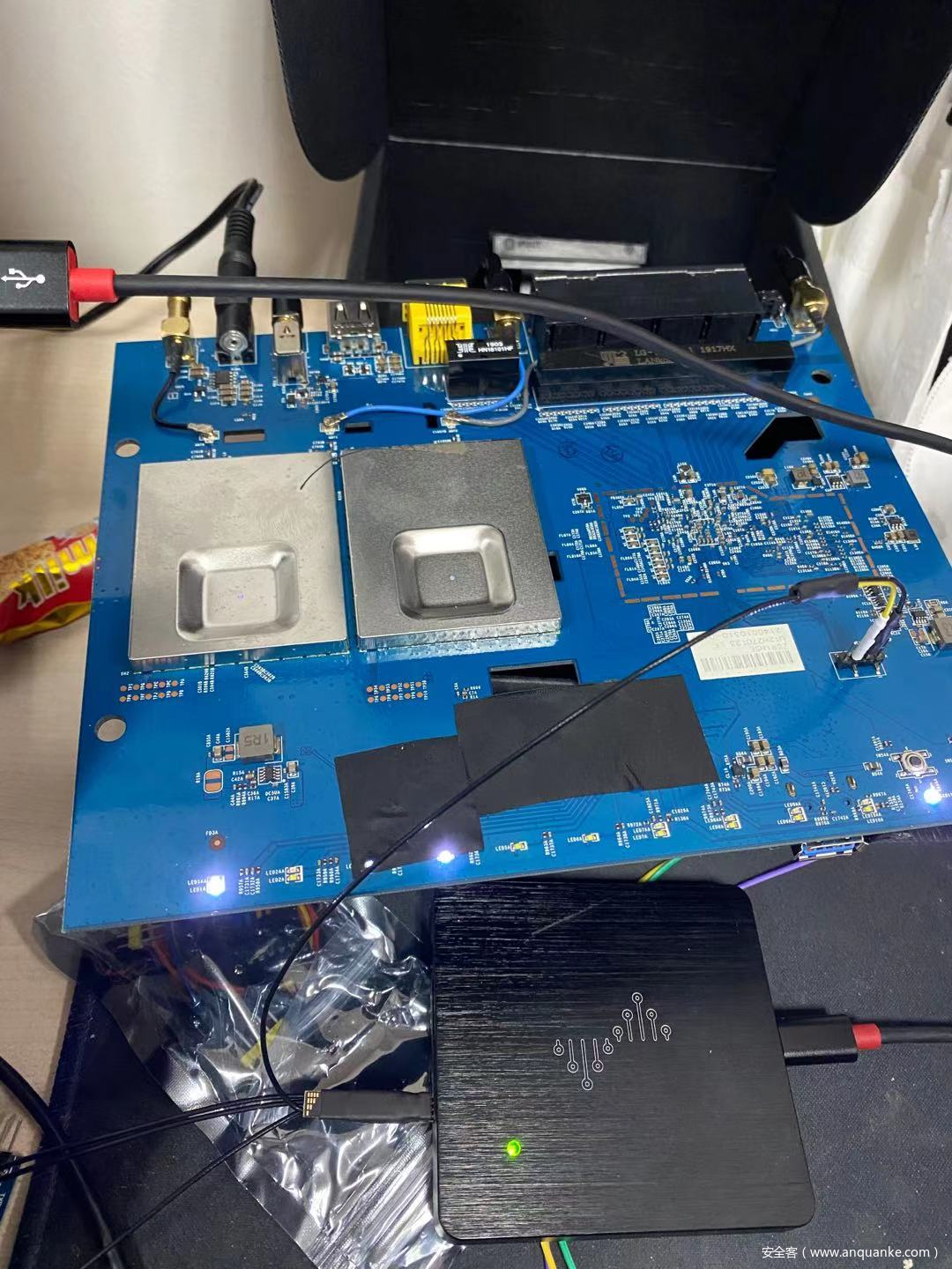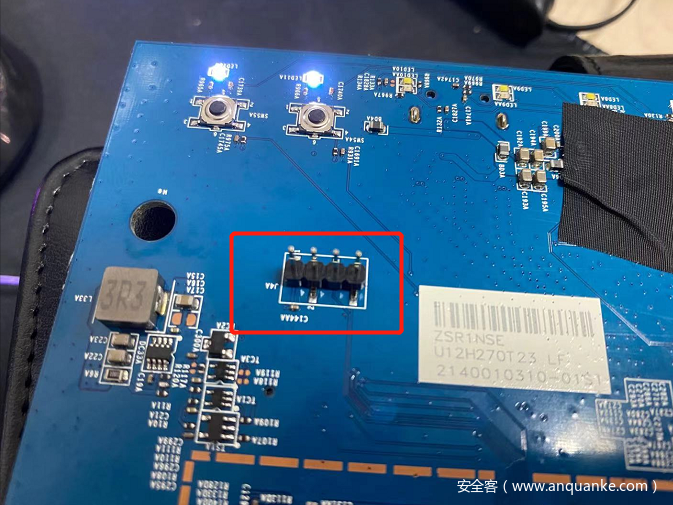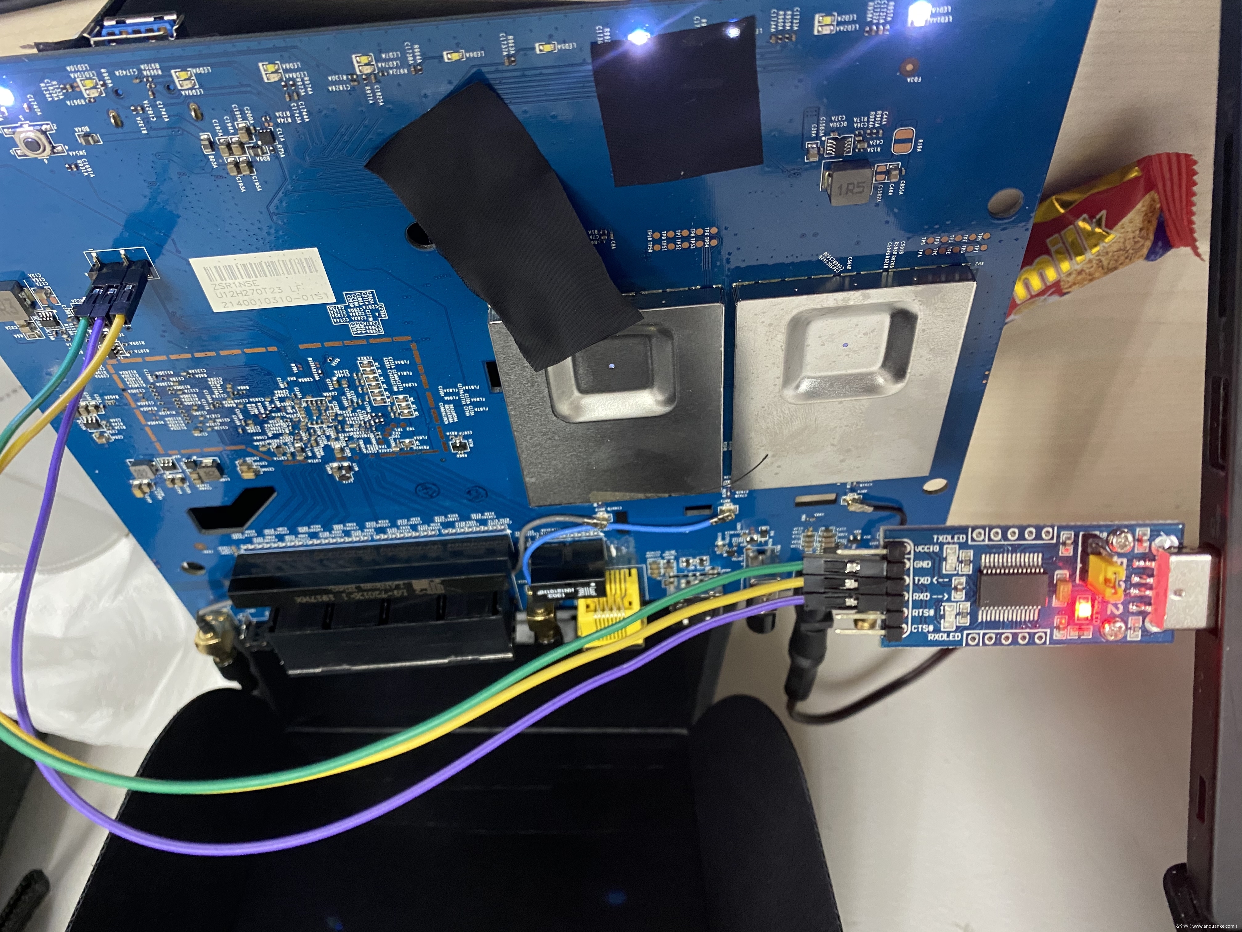 拆开路由器的外壳,可以很明显的看到路由器PCB 中有UART的四根引脚,如下图所示。