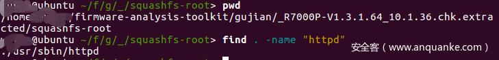 把下载好的固件包使用binwali -Me 解开。在后查看httpd 文件所在的位置