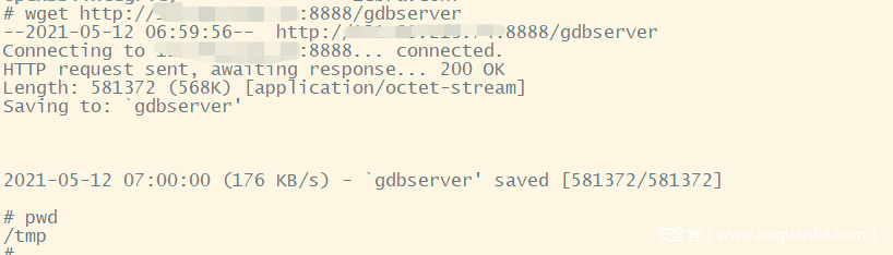 cd /tmp/;wget http://xx.xx.xx.xx:xxxx/gdbserver;chmod 777 gdbserver