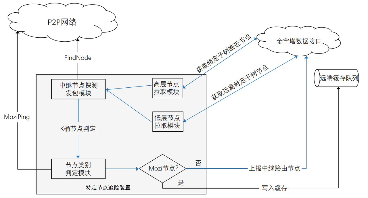 特定节点追踪装置可以在网络中部署若干个,多路并行的追踪装置可以极大提高追踪的效率。