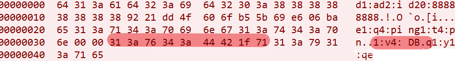 Mozi节点在通过正常的P2P通信加入网络后,为了快速区分通信的P2P节点是否同样为Mozi节点,使用1:v4:flag(4 bytes)这样的标识来识别流量是否由其同类节点发出,达到同伙握手识别的目的,如图6所示。