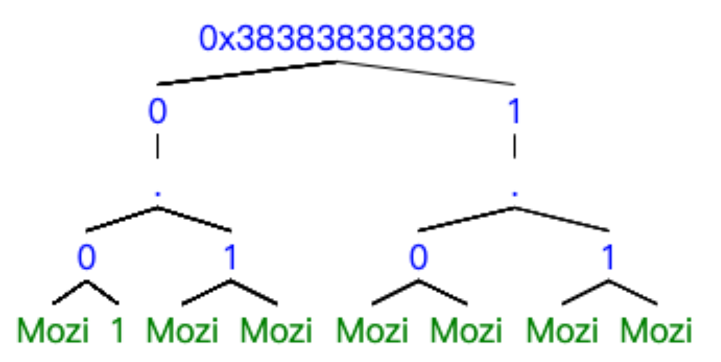 Mozi节点ID的硬编码前缀的特性,可等价认定Mozi节点在P2P网络某些特定子树下出现了聚集现象: