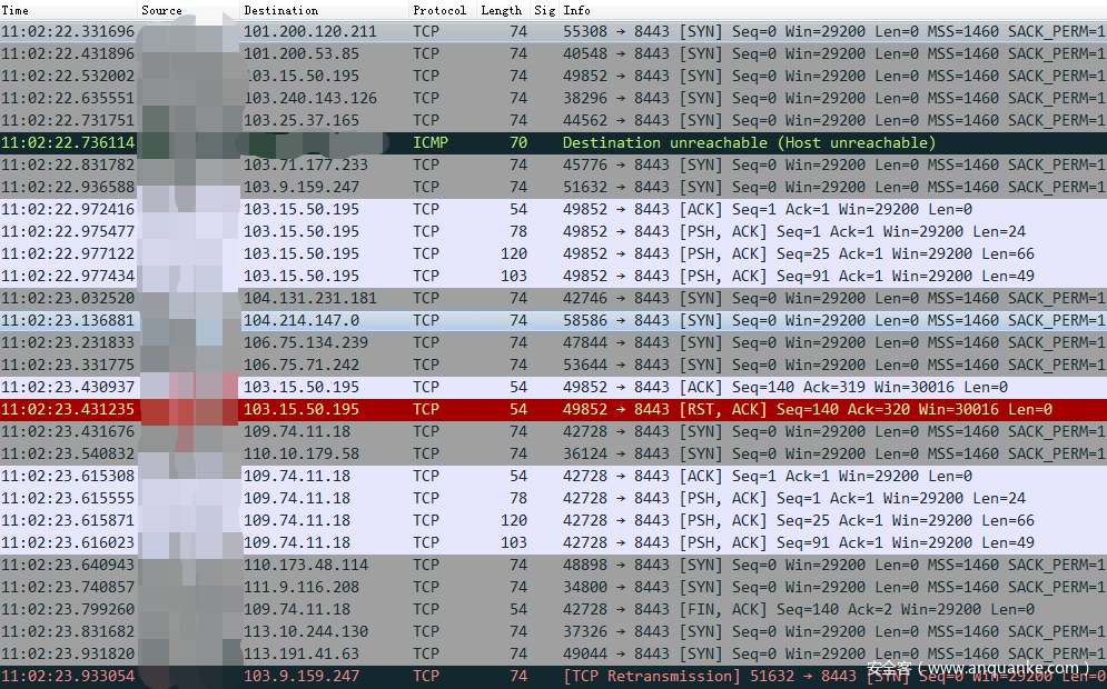 如前所述,我们在监控其 v2011 版本的时候,发现其中两个域名没有注册,unains1748[.]com 和 5dba35bsmrd[.]com 。我们注册了这两个域名,合并到我们的 Sinkhole 池中,并几乎立刻看到有 IP 开始连接这两个域名,后来我们确认来连接的这些 IP 均是被 DDG 感染的主机。