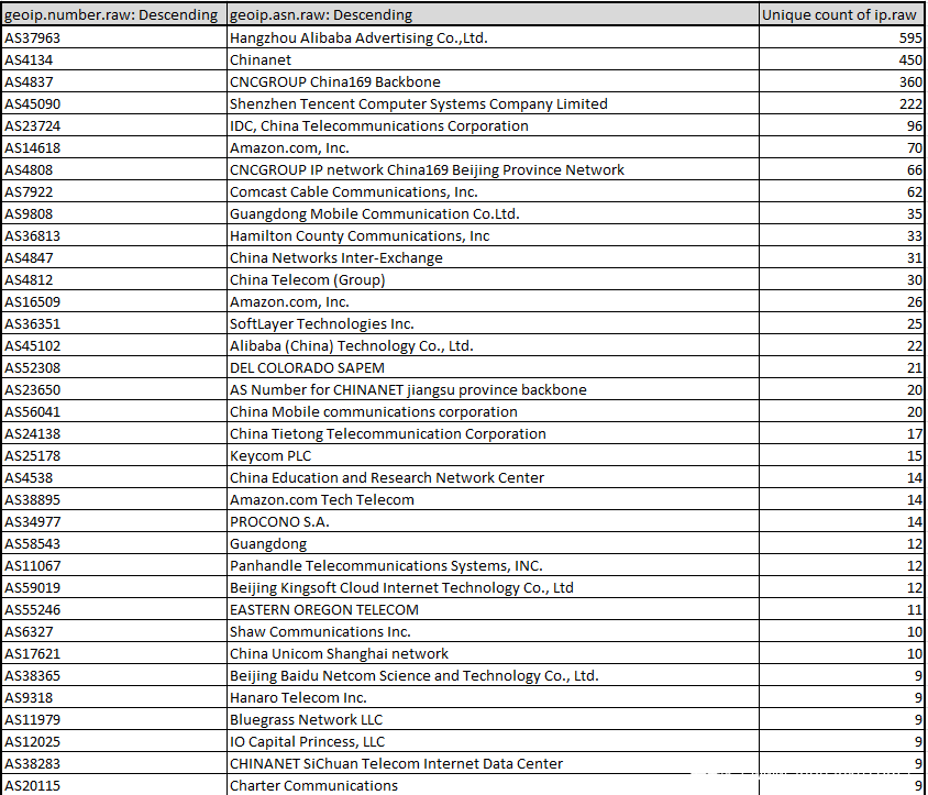 从网络自治域分布来看,国内各主要云计算服务商均有出现,国外若干互联网巨头公司也有少量中招。总体来看,因为 DDG 投入时是利用数据库服务器的错误配置或者漏洞利用,云服务厂商既往确实不容易防范。建议后续云服务厂商考虑加强这方面的防御措施。