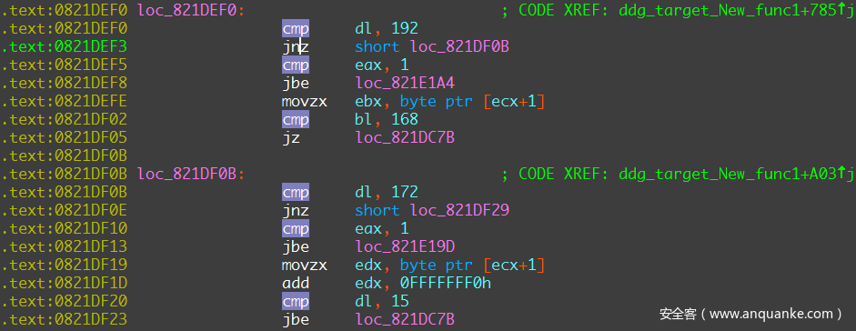 结束对内网的扫描之后,ss2480.2 会访问 hxxp://v4.ident.me 获取当前主机的公网 IP 地址 WAN_IP ,然后在 WAN_IP/8 范围内生成公网 Target IP 发起扫描。样本中生成公网 Target IP 时,会过滤掉保留地址段: