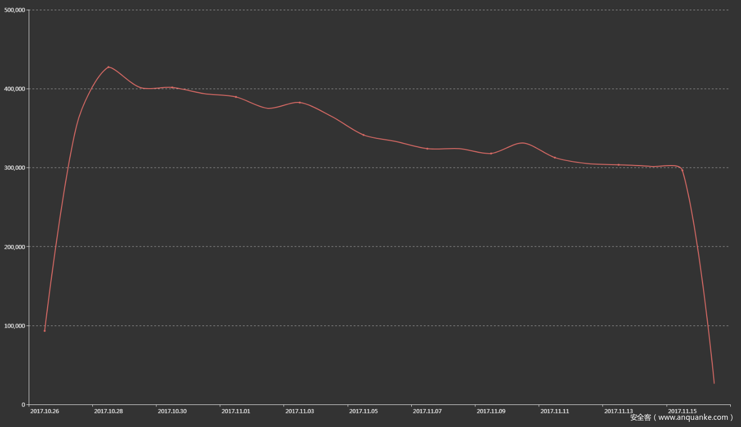 DDG 累积挖取的门罗币数目较大。目前我们能够确认该僵尸网络累积挖取的已经超过 3,395枚门罗币,按当前价格折合人民币 ¥5,821,657 。另外因为矿池记账系统的问题,有2,428枚 XMR不能完全确认是否归属 DDG,按当前价格折合人民币 ¥4,163,179。DDG 是目前我们视野范围内门罗币收益第二大的僵尸网络,第一大的是我们之前报告的 MyKings 僵尸网络。