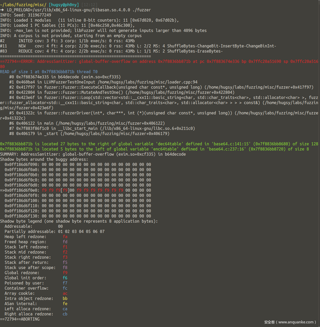 Exim是一个MTA(邮件传输代理),编译成功后是一个独立的二进制程序。这种情况下AFL发挥的作用有限(网络服务场景),但却是完美实践LIEF+LibFuzzer的一个场景。