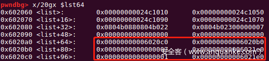 pay+= p64(0x6020b0)+'a'*8+p64(0x4)+p64(0x6020c0)
