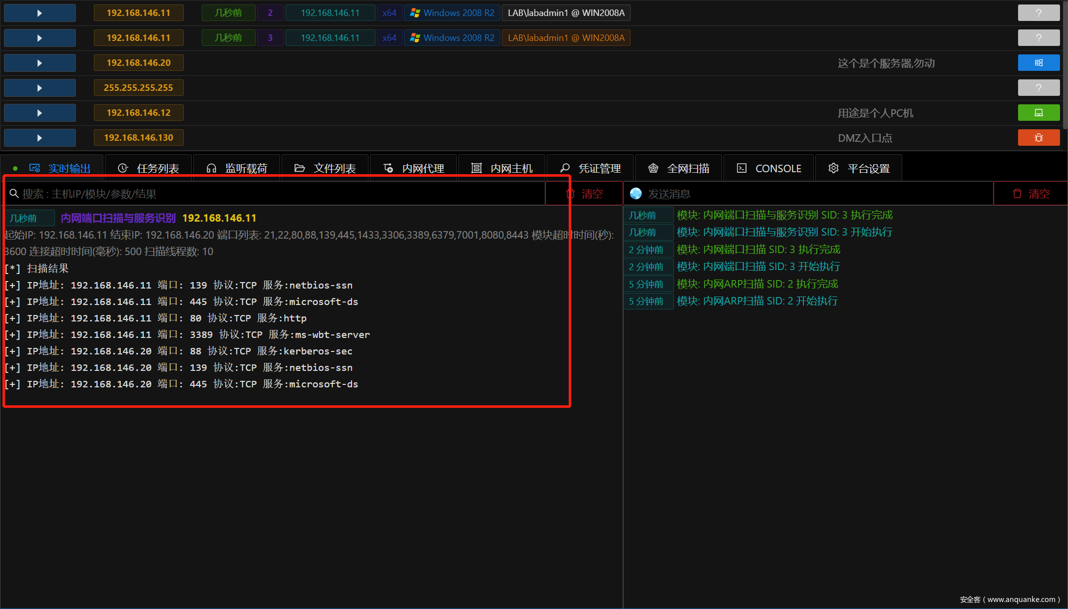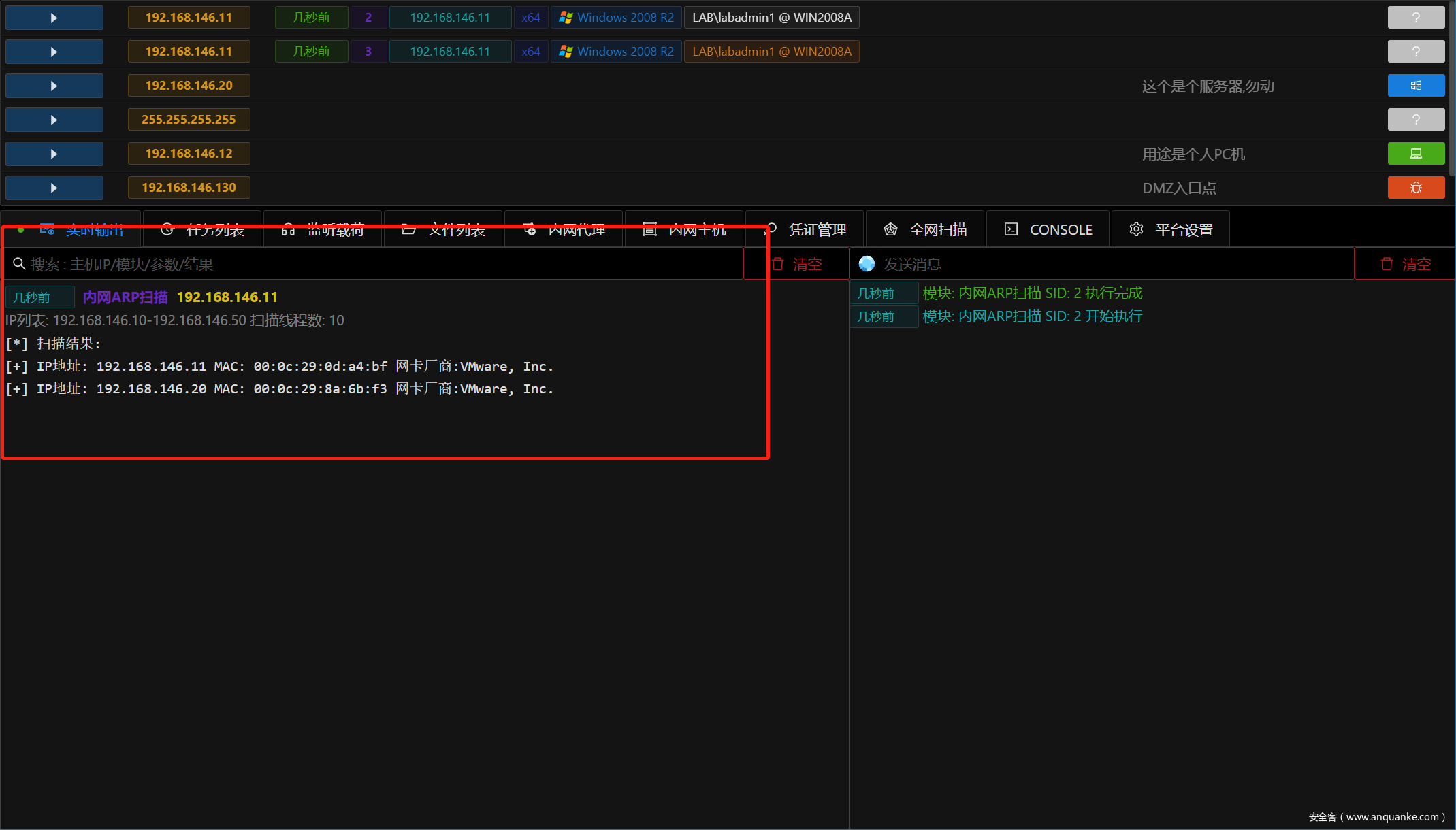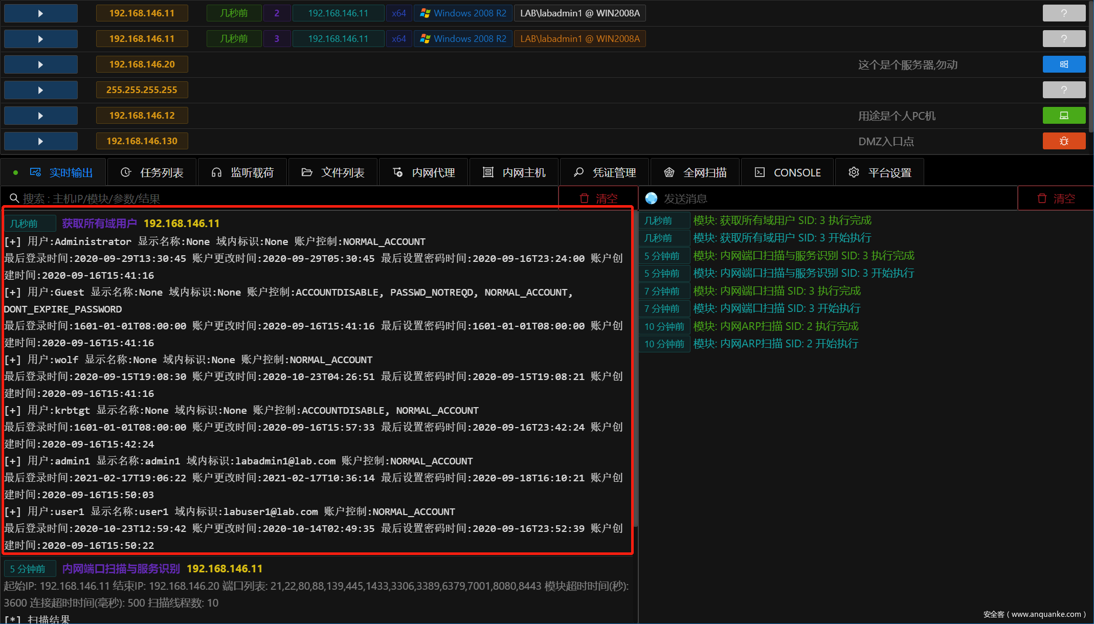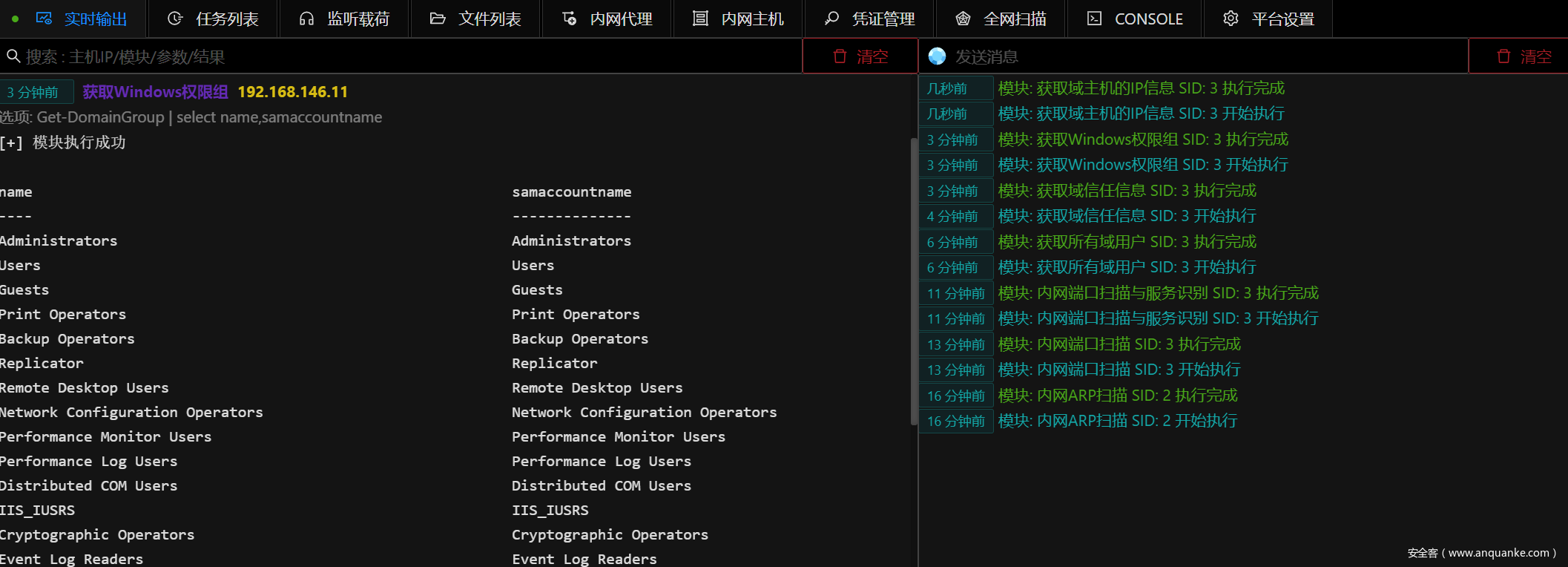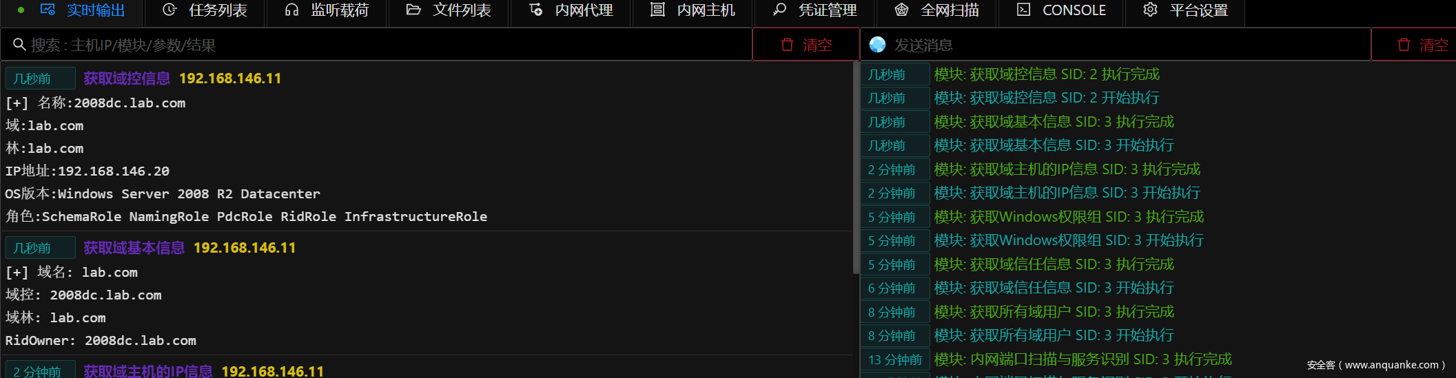 对于有一定内网渗透测试经验的人员来说,在实际渗透测试过程中更需要一款集成常用功能,可以灵活搭配,自动化完成固定操作流程的测试平台.特别是在信息收集阶段,每次获取新的权限都要执行很多重复性的工作,收集到的信息又分散在不同的工具中,不方便进行统计分析.