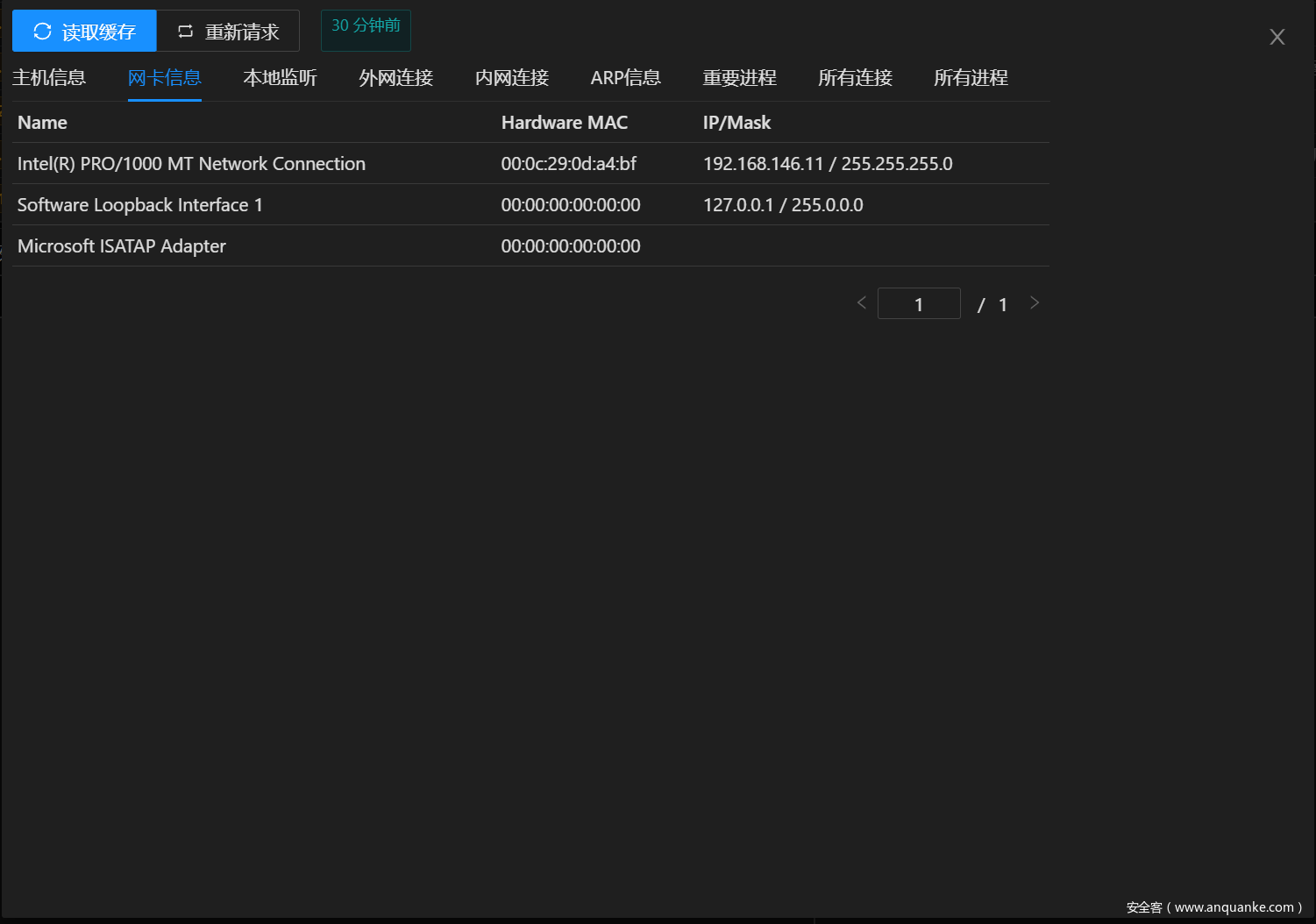 网卡信息中会展示当前主机的所有网卡配置及IP/Mask,在内网中如果一台主机有多个网卡,且连接不同的子网,后续渗透过程中可以通过该主机作为跳板,来进行多级网络的内网渗透.