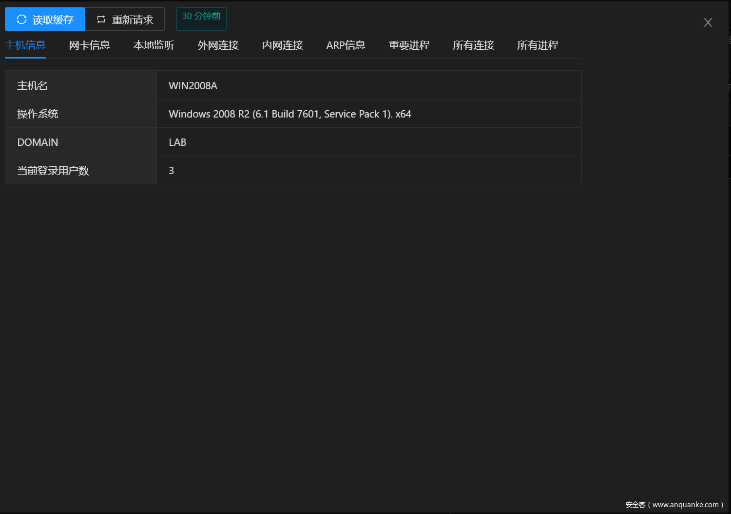 本地信息收集包括 主机名 操作系统 域 网卡信息 本地监听 外网连接 内网连接 ARP信息 重要进程 等信息