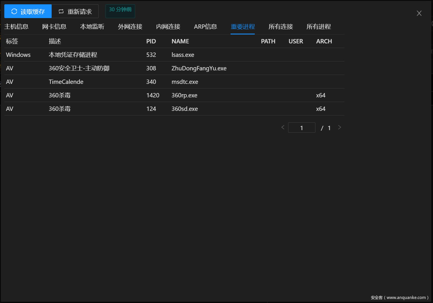 系统的凭证相关进程lsass.exe或杀软进程需要重点关注,Viper会根据内置的数据库信息进行比对,展示所有敏感进程.