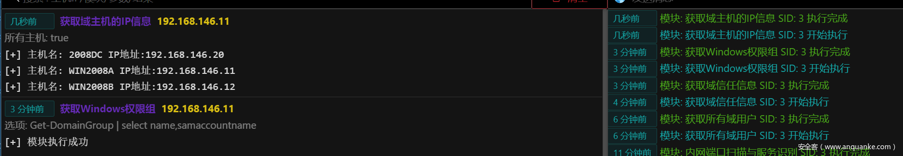 域渗透在内网渗透占有很大比重,且域中通常有很多高价值目标,一旦获取域控权限则几乎可以控制域内任意主机,在HW及红队评估过程中域一直受到重点关注.Viper也集成多个域相关信息收集模块,这里举几个例子.
