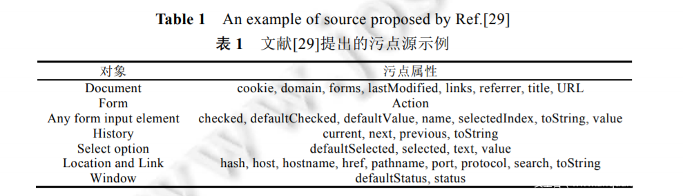 型不同,也会导致对污点源和污点汇聚点的收集方法迥异.表 1 所示为在 Web 应用程序漏洞检测中的污点源示