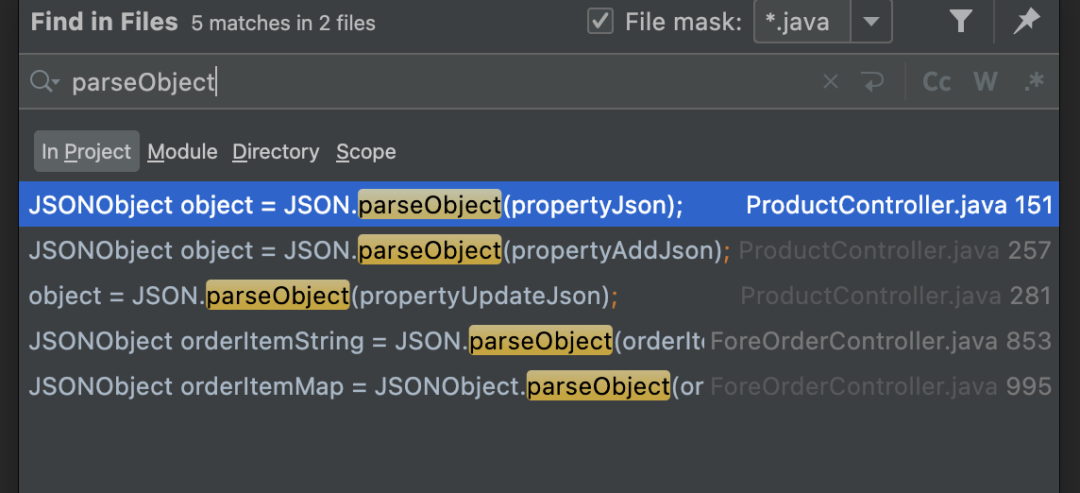 Java审计其实和Php审计的思路一样,唯一不同的可能是复杂的框架和代码。从数据层查找变量,一级一级调用,最后到控制器,这种相对简单、快速。查找变量,有没有传参数,是谁调用了这个变量,又是谁调用了这个方法,先从控制器找变量,然后逆着找方法,调用关系,最后到DAO层数据。这种方法一般比较浪费时间,跟踪到最后可能发现变量不可控。比如搭建后,访问平台,发现有上传的功能,直接去控制器找上传相关代码,进行审计。这是最纯粹、最直接的方式。但是可能会遇到一个问题——看不懂代码。大多数JavaEE网站,用的相对多的是SpringMVC架构,那么用到的Mybatis框架就会比较多,所以搜索SQL关键字就是”${}”优先,其次是以下的关键字。如果是SpringBoot ,可能会使用注解等方式,如: