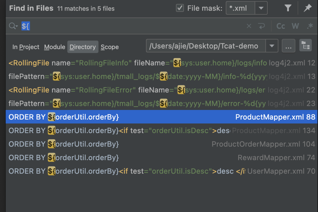 因为用了mybatis框架,所以先搜索看看有没有使用不安全的符号进行传参:![]()
