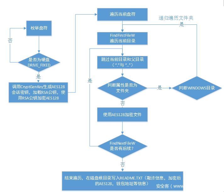 “坏兔子”勒索病毒主要包括如下流程: