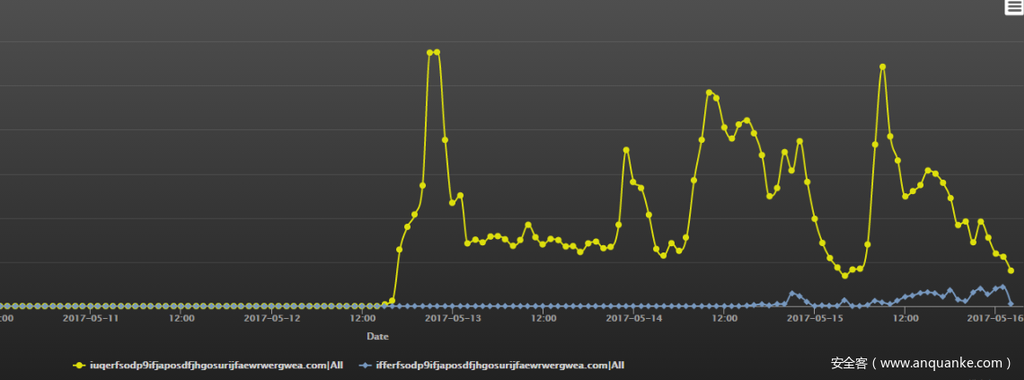 结合360互联网安全中心的大数据监测分析,下图给出了2017年不同勒索软件家族在国内的活跃时间分析。
