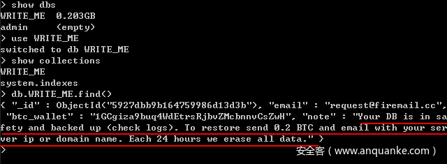 这些公网上存在漏洞的数据库,被攻击者删除了数据库中的存储数据,并留下勒索信息,要求用户支付赎金。更有甚者直接清空数据库,并没有对数据进行保存,即使支付赎金也无法挽回损失。
