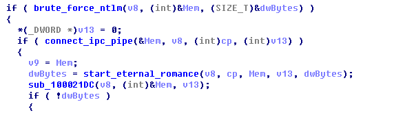 在暴力破解完成后,会试图利用“永恒浪漫”漏洞实现进一步感染。