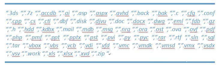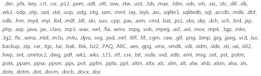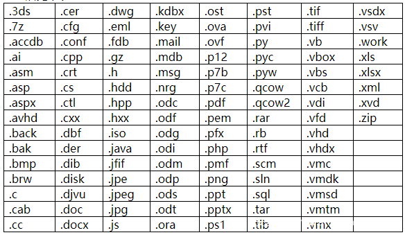 加密的文件后缀名列表: