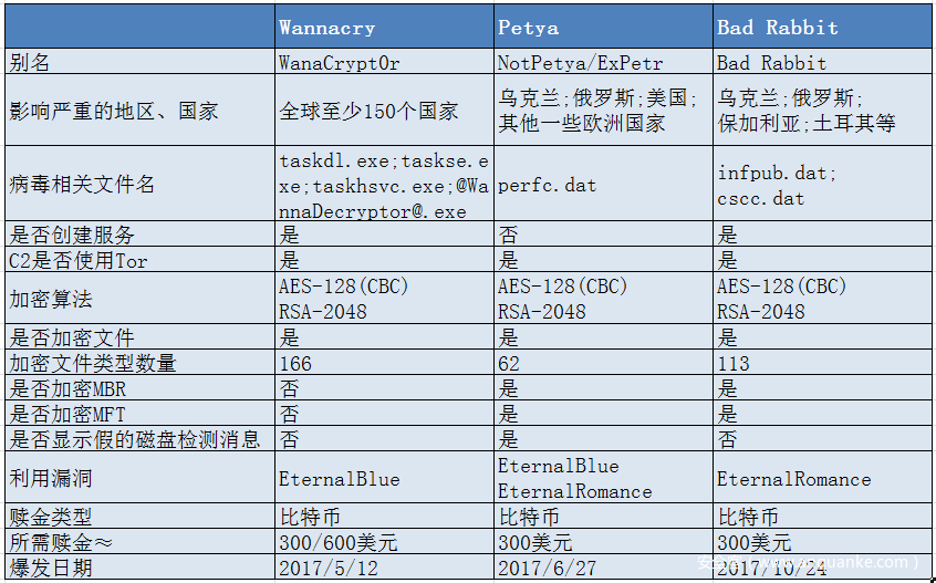 WannaCry是2017年度影响范围最大的新型勒索软件,通过利用漏洞,迅速传播至全球。在WannaCry爆发后不久,新变种的Petya、Bad Rabbit卷土重来,并综合了更多网络传播方式,破坏性也更强。