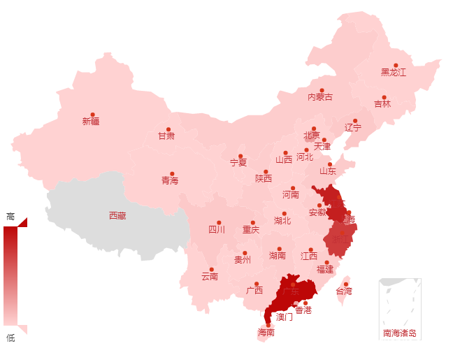 在受影响的地区中,江苏、浙江、广东、江西、上海、山东、北京和广西排名前八位。