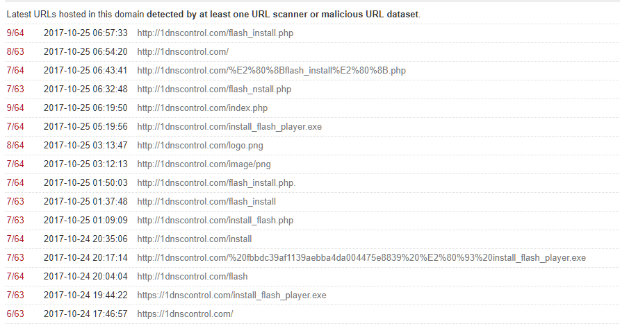 “坏兔子”勒索病毒通过链接 hxxp://1dnscontrol[.]com/flash_install.php 链接进行传播,该域名下的可疑连接如下:
