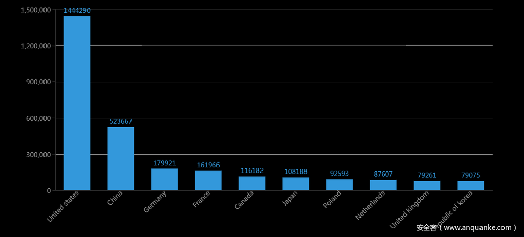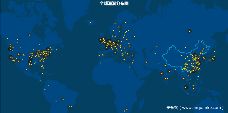 同时也针对Apache Solr的未授权访问情况作了调查,发现公网存在大量未授权访问的数据库系统,其中涉及数据上百TB。(下图为360CERT以发现的Apache Solr未授权访问漏洞在全球的分布状况)