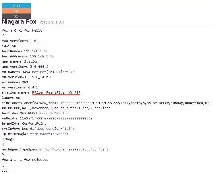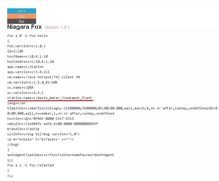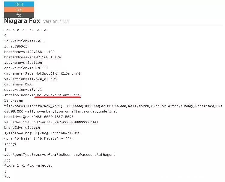 fox a 0 -1 foxhello\n{\nfox.version=s:1.0.1\nid=i:255149\nhostName=s:192.168.1.11\nhostAddress=s:192.168.1.11\napp.name=s:Station\napp.version=s:3.8.311\nvm.name=s:JavaHotSpot(TM) Embedded ClientVM\nvm.version=s:25.141-b06\nos.name=s:QNX\nos.version=s:6.5.0\nstation.name=s:Guadelupe_Jail\nlang=s:en\ntimeZone=s:America/Chicago;-21600000;3600000;02:00:00.000,wall,march,8,onor after,sunday,undefined;02:00:00.000,wall,november,1,on orafter,sunday,undefined\nhostId=s:Qnx-JVLN-0000–05A1–7B93\nvmUuid=s:11e98b97-b656–1c50–0000–00000000bafd\nbrandId=s:vykon\nsysInfo=o:bog61[<bog version=”1.0″>\n<p m=”b=baja” t=”b:Facets” v=””/>\n</bog>\n]\nauthAgentTypeSpecs=s:fox:FoxUsernamePasswordAuthAgent\n};;\nfoxa 1 -1 fox rejected\n{\n};;\n