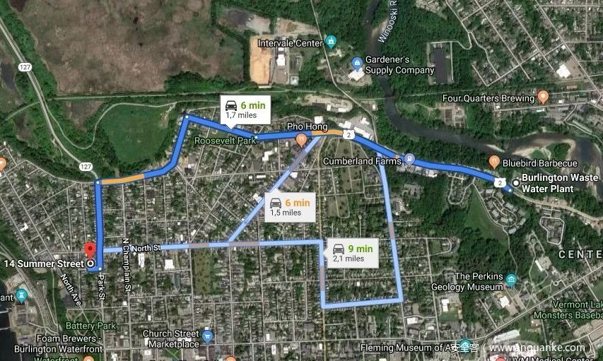 IP 地理定位指向佛蒙特州伯林顿的夏日街道14号 (IP geolocation points to 14 Summer Street inBurlington, Vermont),距离最近的废水工厂1.5英里。
