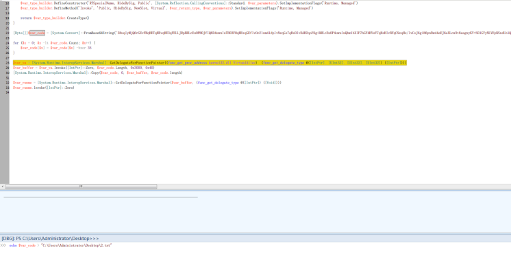 这里调试ps1文件,直接将shellcode写入到2.txt中: