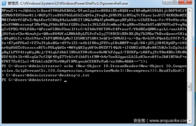 写入到1.txt中的内容还是一段Powershell指令,代码如下: