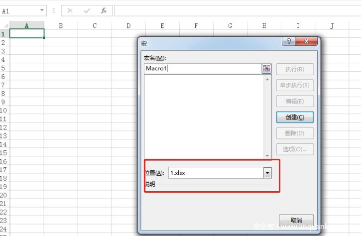 所以可以直接在excel中创建一个宏对象,将hat文件中的宏代码拷贝过去调试,记得位置需要选择到当前的文档,而不是应用到所有模板