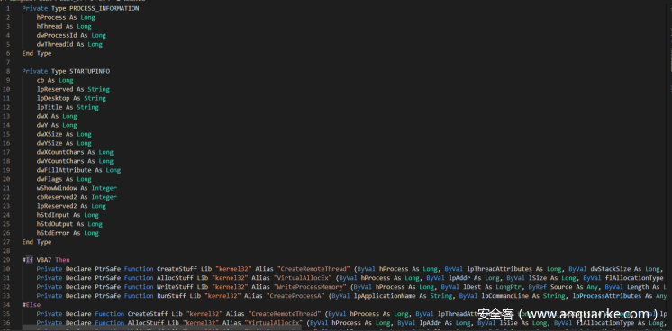 VBA 将会在hta文件中内嵌一段VBA代码