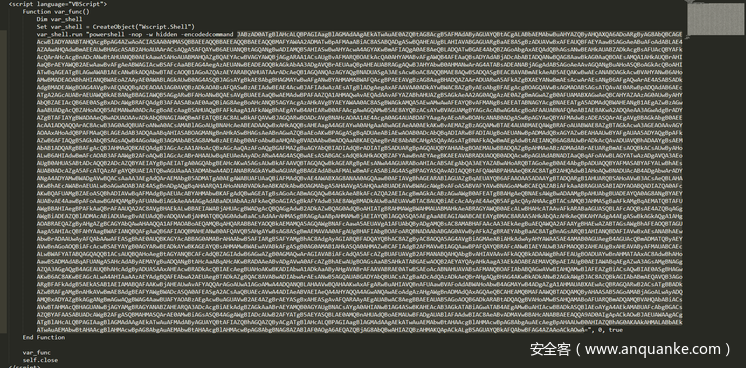 该类样本主要是创建一个包含VBScript的hta文件,在VBScript中,有一个硬编码的PE