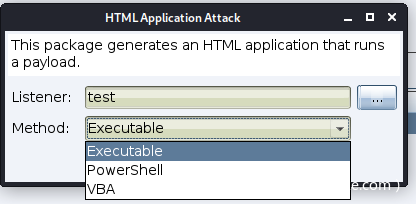 CobaltStrike可生成三种类型的hta文件,分别是Executable、Powershell、VBA。
